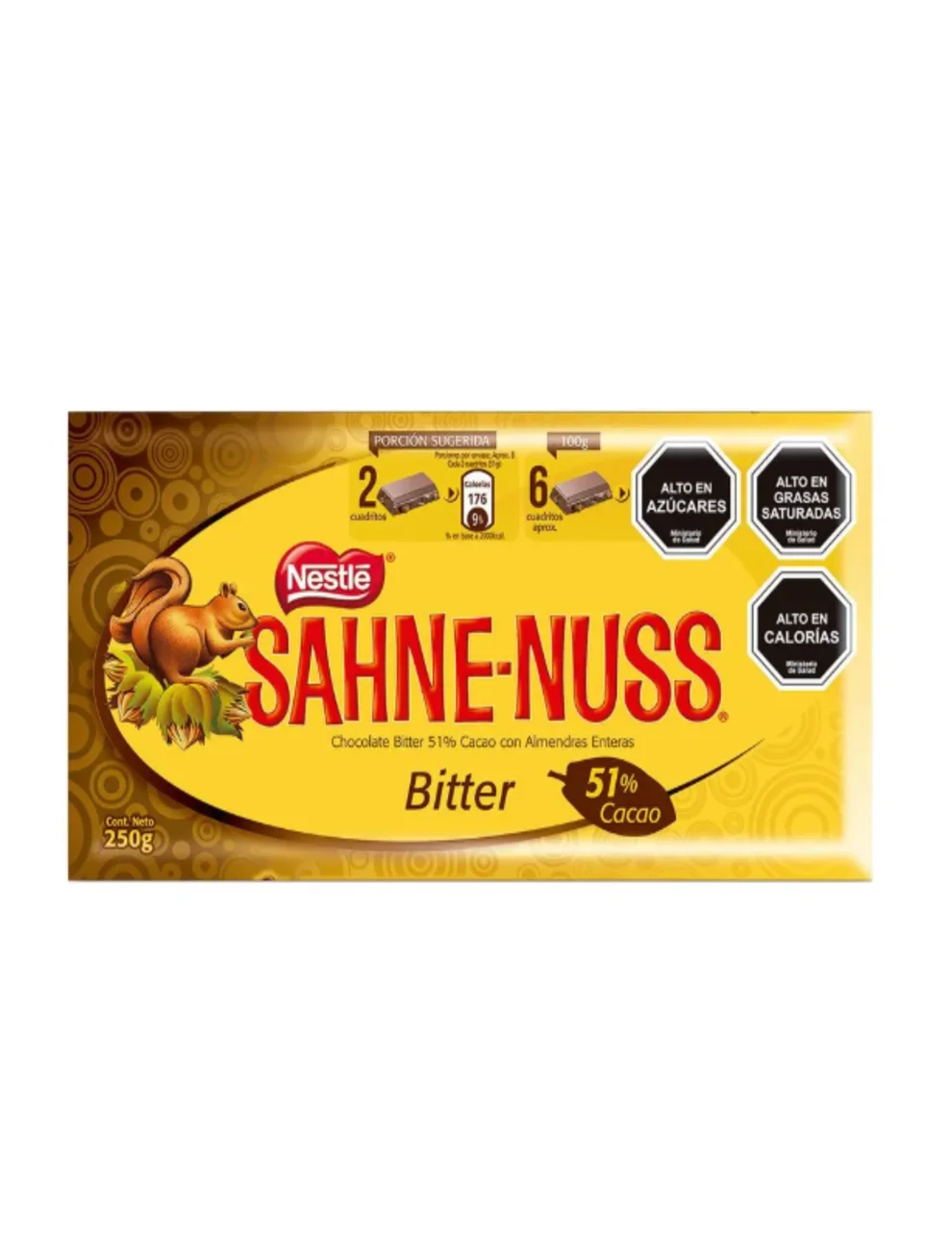 Descripción: Chocolate Sahne Nuss Bitter 51% Cacao de Nestlé, 250g.