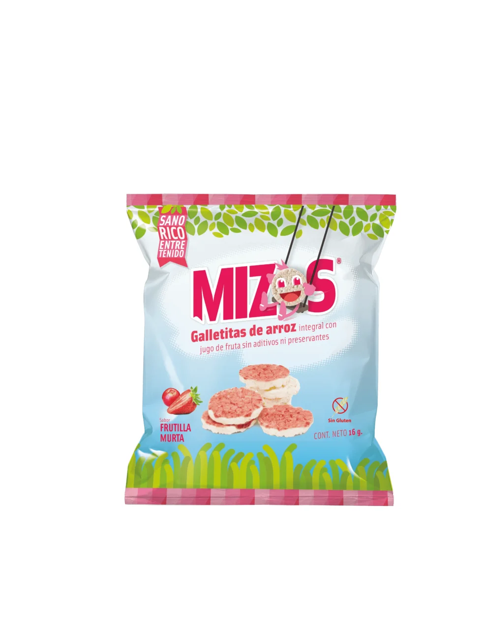 Descripción: Galletas De Arroz Sabor Frutilla Murta Mizos, 16grs.