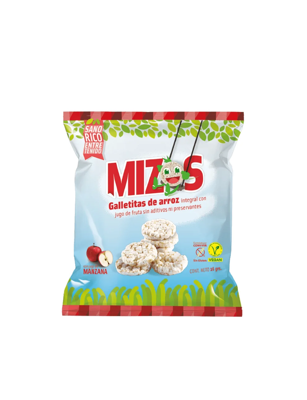 Descripción: Galletas De Arroz Sabor Manzana Mizos, 16grs.