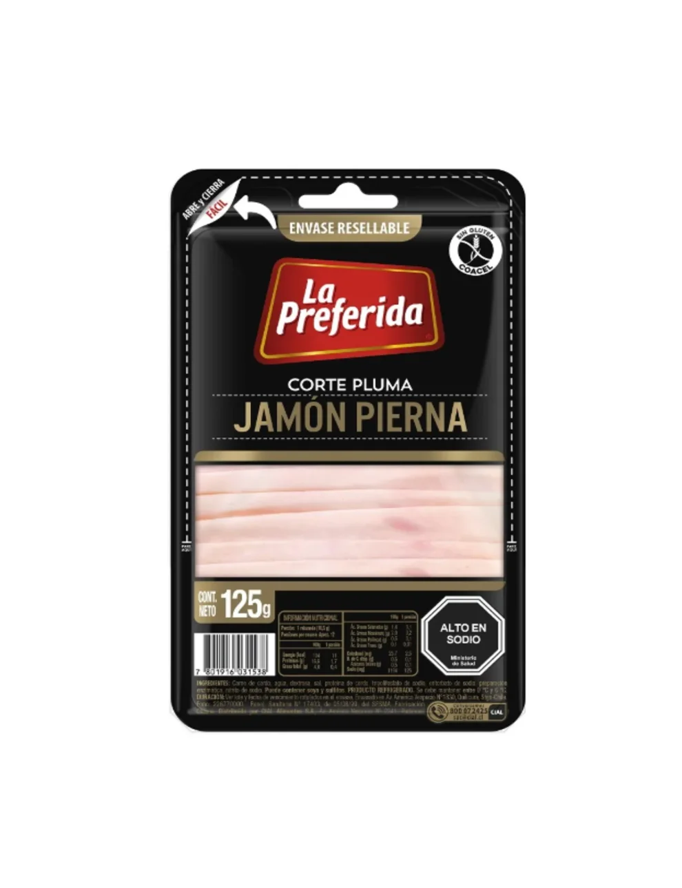 | Descripción: | Jamón de Pierna Corte Pluma La Preferida, 125g. |