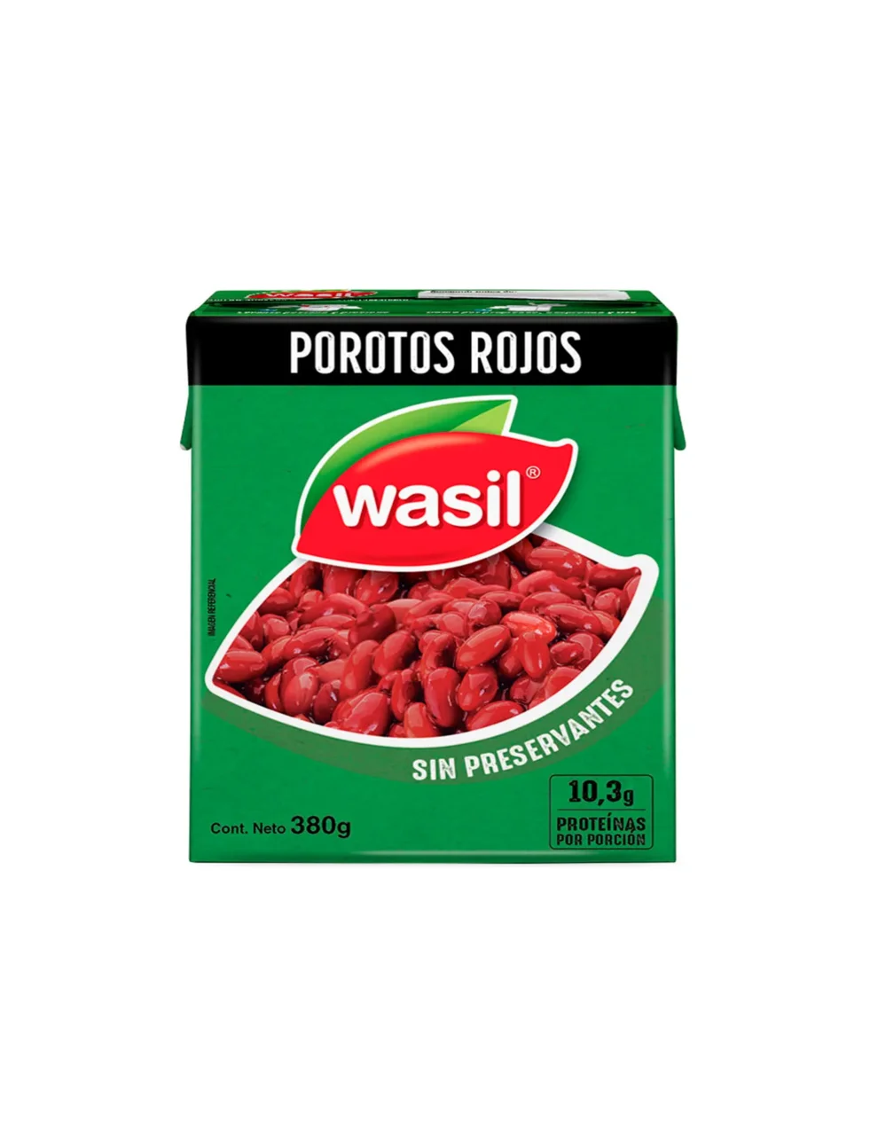 Descripción: Poroto Rojo Wasil Listo para Servir, 380g neto (drenado 230g).