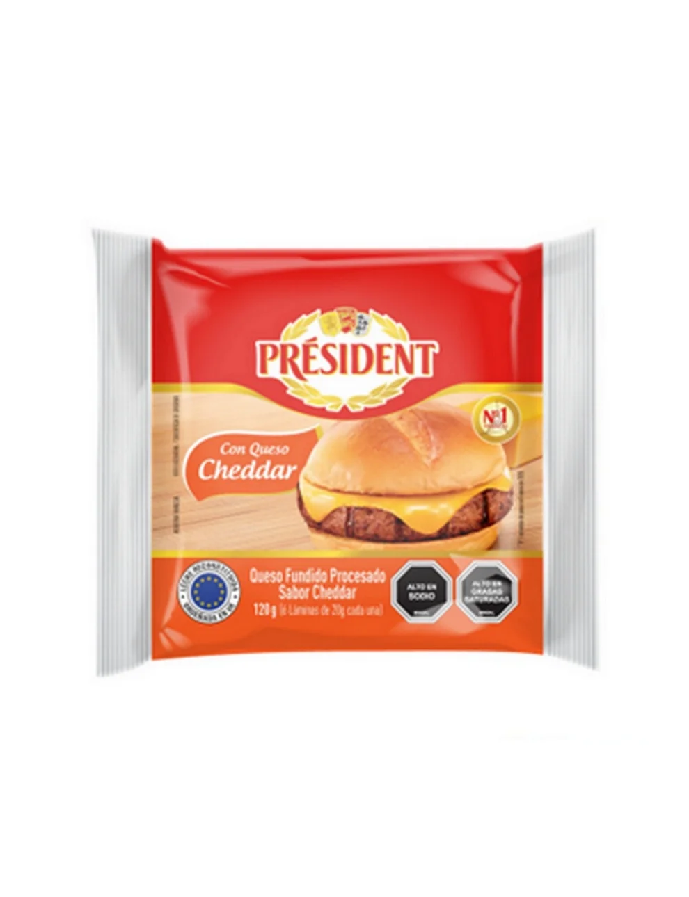 Descripción:Queso Cheddar Fundido Laminado Président, 120g.