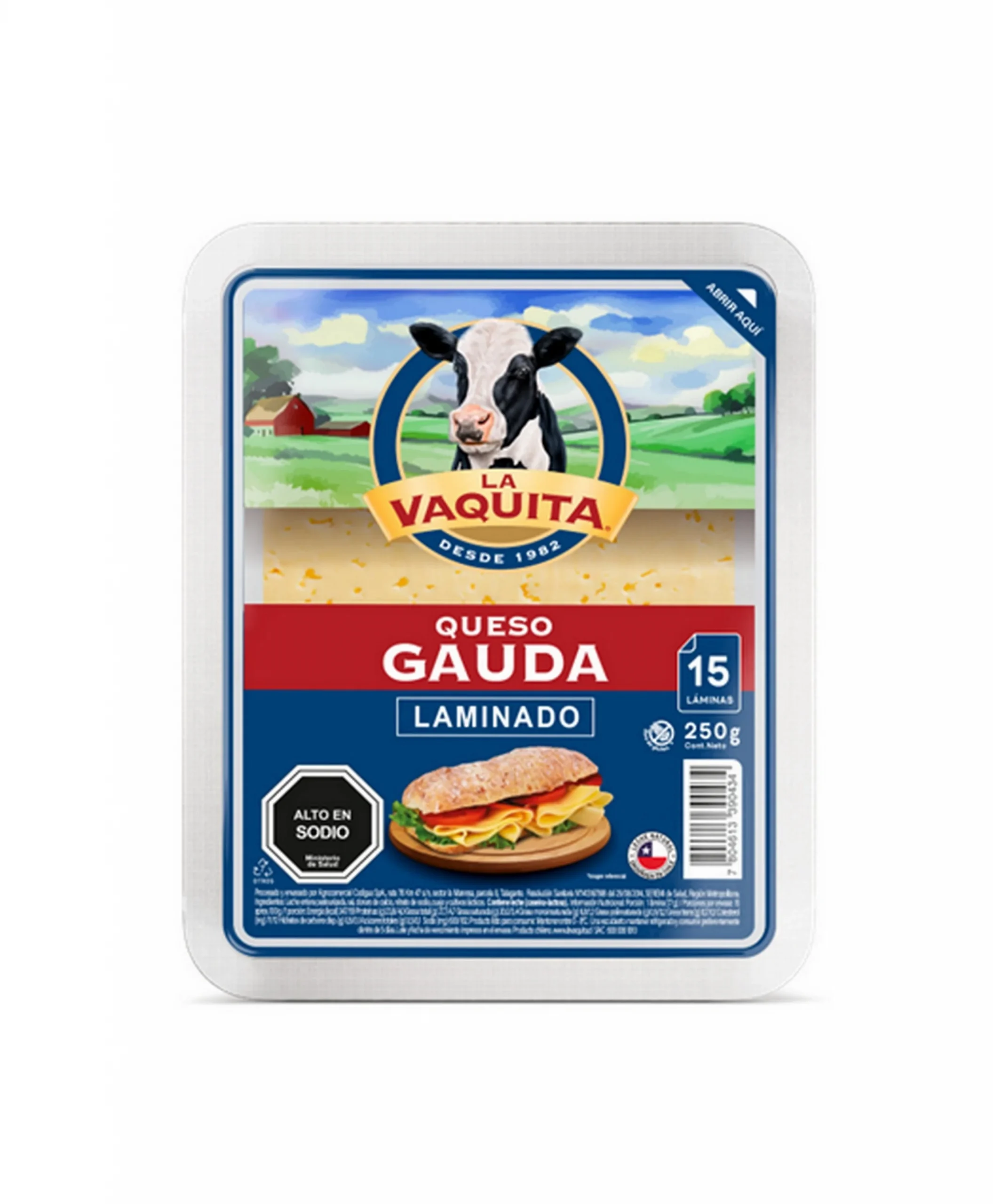 Descripción:Queso gauda laminado La Vaquita 250g.