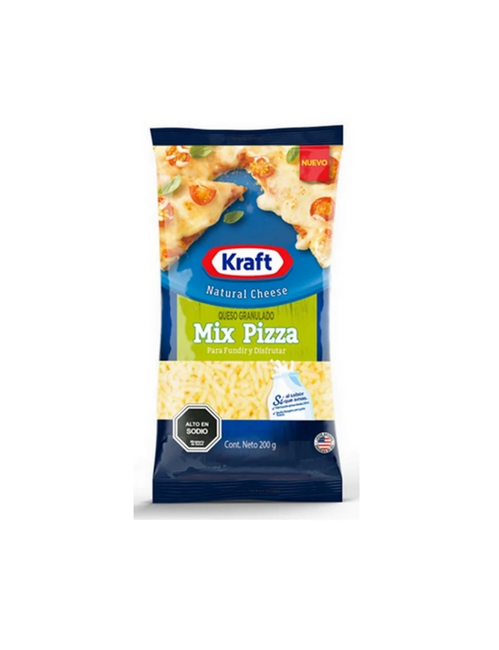 Descripción:Queso granulado Mix Pizza Kraft, 200g.