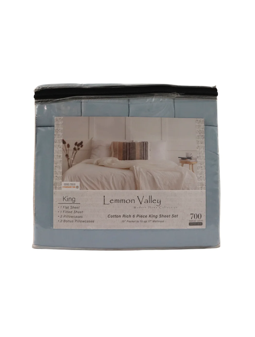 Renueva tu descanso con estilo y comodidad con este set de sábanas King Lemmon Valley de 6 piezas. Su diseño en color azul aporta un ambiente relajante y moderno al dormitorio, ideal para quienes buscan una combinación perfecta entre funcionalidad y estética.
