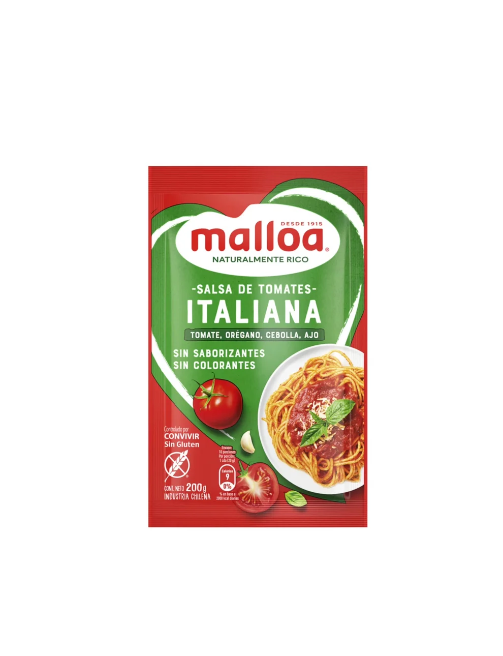 Descripción: Salsa de Tomate Italiana Malloa, 200g.